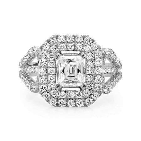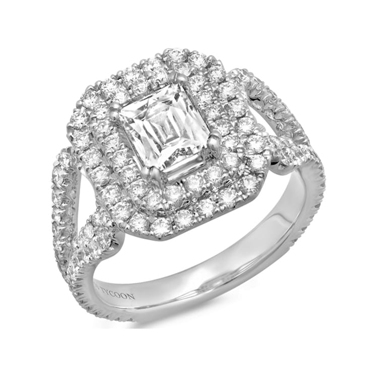 18KT WHITE GOLD TYCOON CUT Double Halo Diamond EGAGEMENT RING