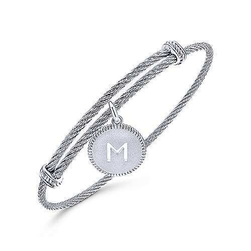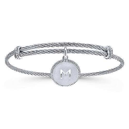 STERLING SILVER & STAINLESS STEEL ADJUSTABLE INITIAL M BANGLE BRACELET