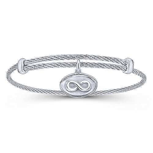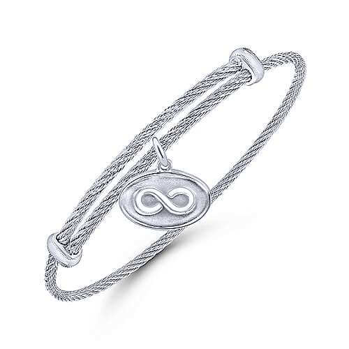 STERLING SILVER & STAINLESS STEEL ADJUSTABLE BANGLE WITH SILVER INFINITY CHARM