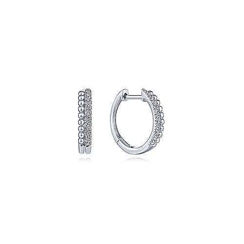 14KT WHITE GOLD GABRIEL & CO 10MM BEADED DIAMOND PAVE HUGGIE EARRINGS