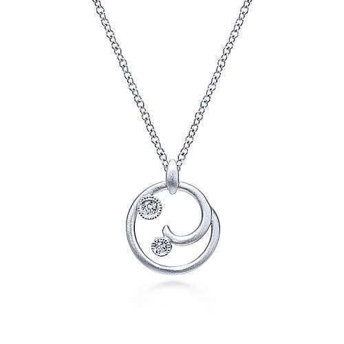 925 STERLING SILVER GABRIEL & CO DIAMOND SWIRL PENDANT NECKLACE
