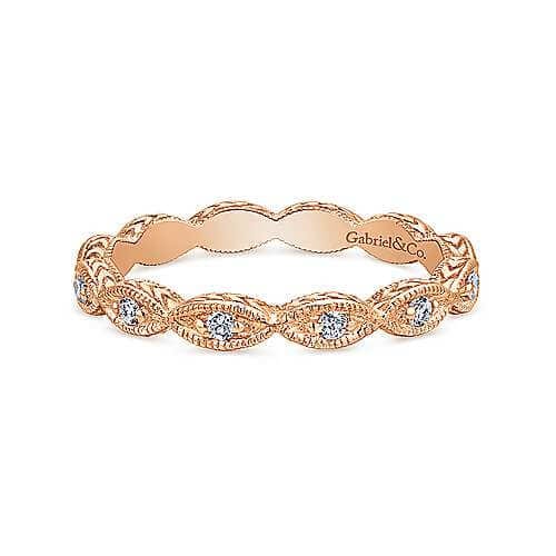 14KT ROSE GOLD GABRIEL & CO DIAMOND MARQUISE STATION STACKABLE RING